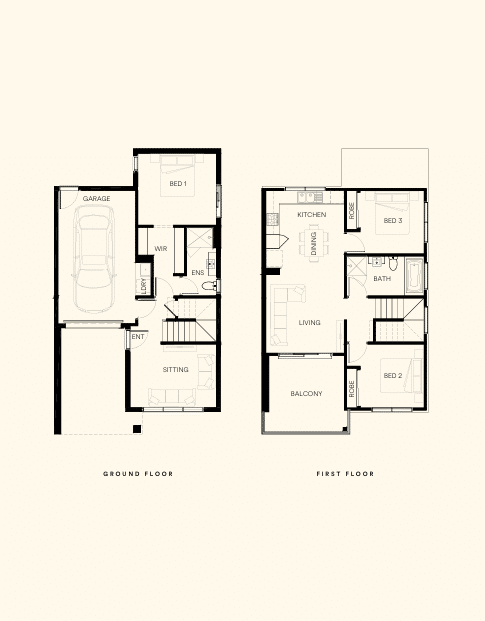 Compact three bedroom design that includes all the must haves of a family home. A large balcony overlooks parkland for extra serenity