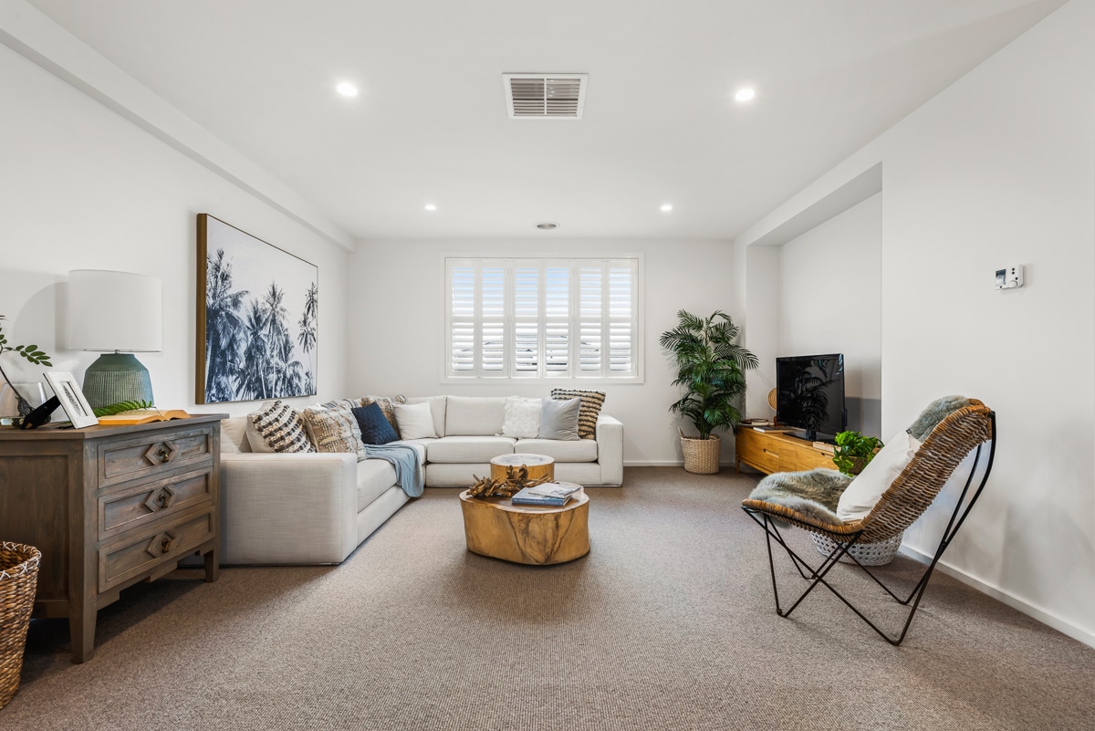 A downstairs powder room is conveniently located close to both the formal and informal living zones. The large formal lounge is lcoated at the front of the home. The perfect spot for entertaining guests.